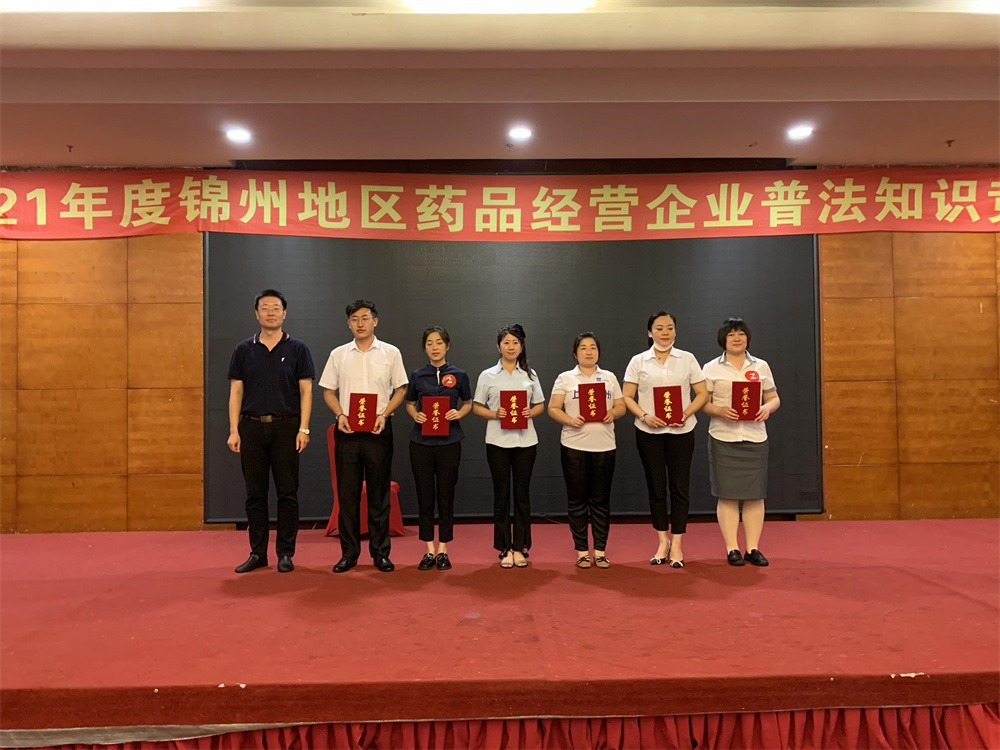 2021年度錦州地區(qū)藥品經(jīng)營企業(yè)普法知識競賽榮獲團體二等獎,及個人一,二,三等獎