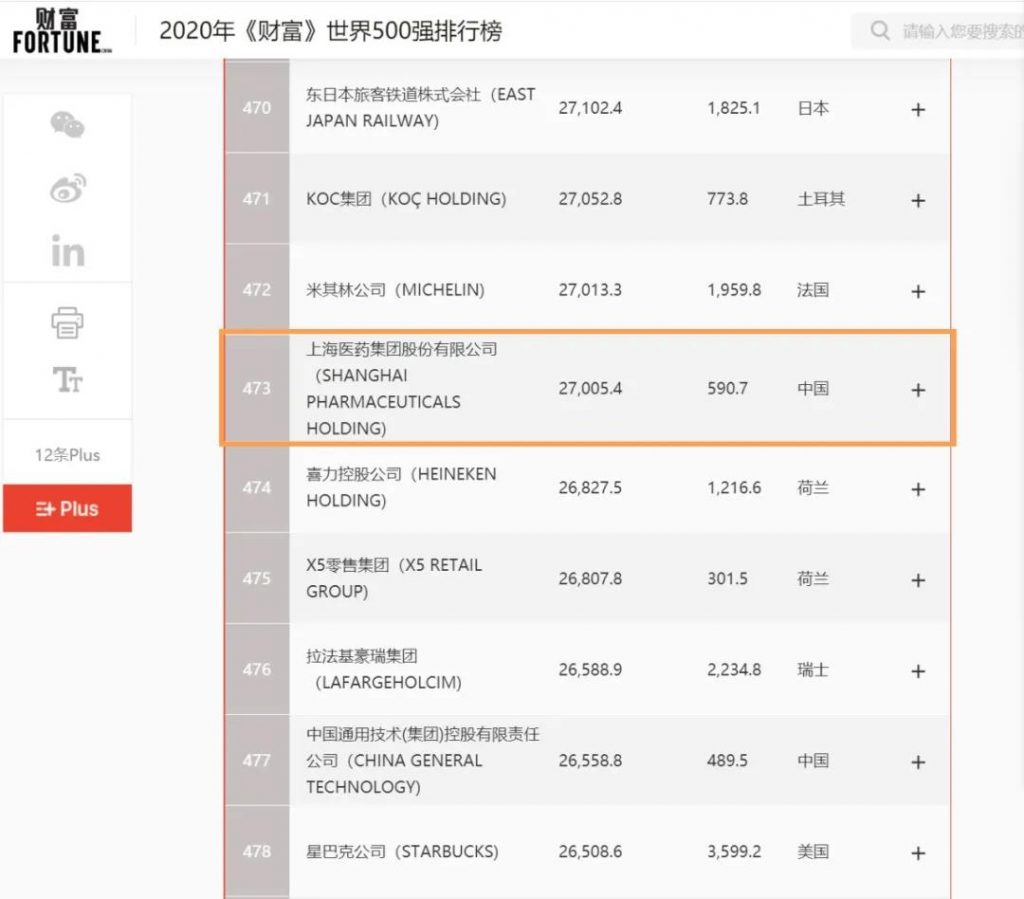 全球500強(qiáng)榜單出爐,上海醫(yī)藥強(qiáng)勢(shì)登榜